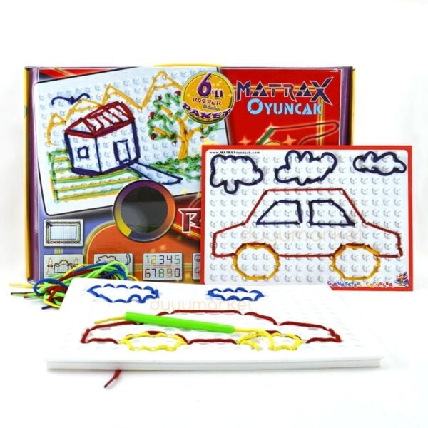 Geometrinin en basit ve temel kurallarından biri üzerine kurulmuş bir mantığa sahip: “İki noktadan bir doğru geçer.” İp oyuncağı ürünümüz üzerinde, özel tasarım delikleri olan, çok yumuşak bir maddeden basılmış bir oyun platformu olarak düşünülebilir. Bu deliklere özel tüplerin içerisinden geçirilmiş renkli ipleri tutturtabiliyorsunuz, bu sayede de delikler arasında renkli renkli çizgiler oluşturulabiliyor.Bu çizgilerin oluşturacağı desenler ise sadece çocukların hayal gücü ile sınırlı. Ayrıca kullanılan malzeme ip olduğundan, iki nokta arasını bir doğru ile bağlama zorunluluğu ortadan kalkıyor. Eğriler, düğümler, fiyonklar ve çocukların akıllarına gelebilecek daha nice şekiller kullanılabilir. Çocuklarımızın gelişimini destekleyen bu ürünümüz aynı zamanda anaokulu, kreş, ilkokul gibi eğitim kurumlarında da tercih edilmektedir. “Rooper – İp Cambazı”, farklı tasarımı, eğlenceli tarzı ve zeka geliştirici özelliği ile çocukların gözdesi olacak. 6’lı paketten oluşan bir set.Ürün Ebatları