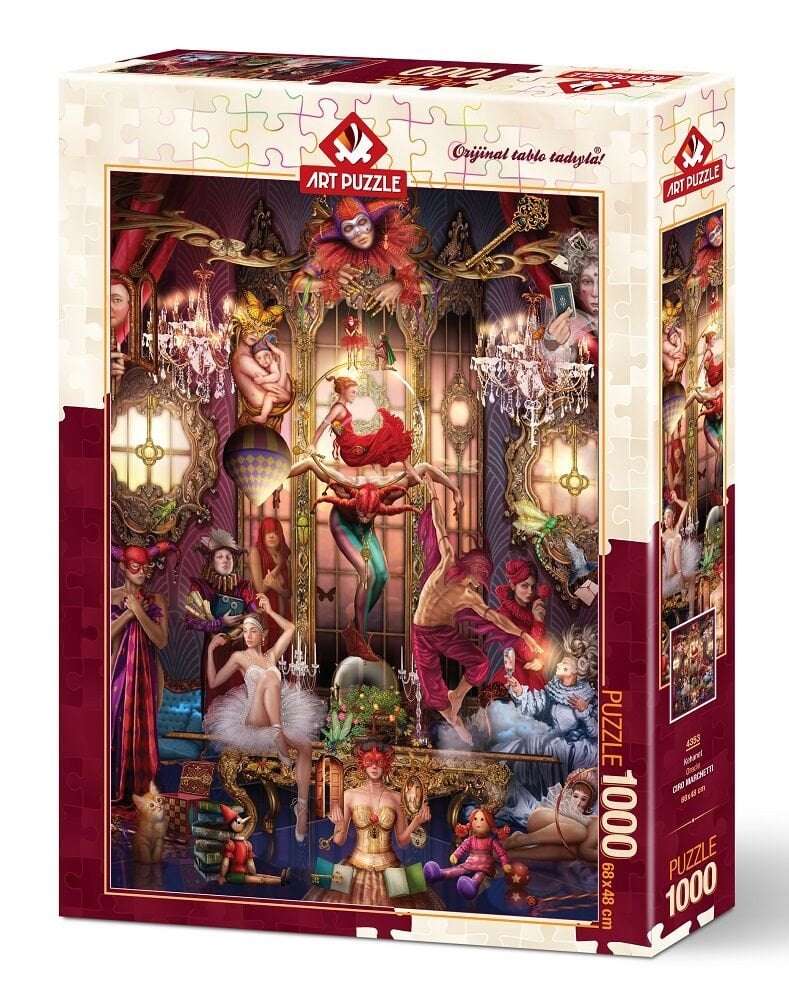 Açıklama : Art Puzzle 1000 parça puzzle monoblok bıçaklarla kesim yapılmaktadır. Her parça farklı kesime sahiptir. Hiçbir parça bir başka yere oturmaz. 2 mm mavi kartona baskı yapılarak el değmeden üretim yapılmaktadır.