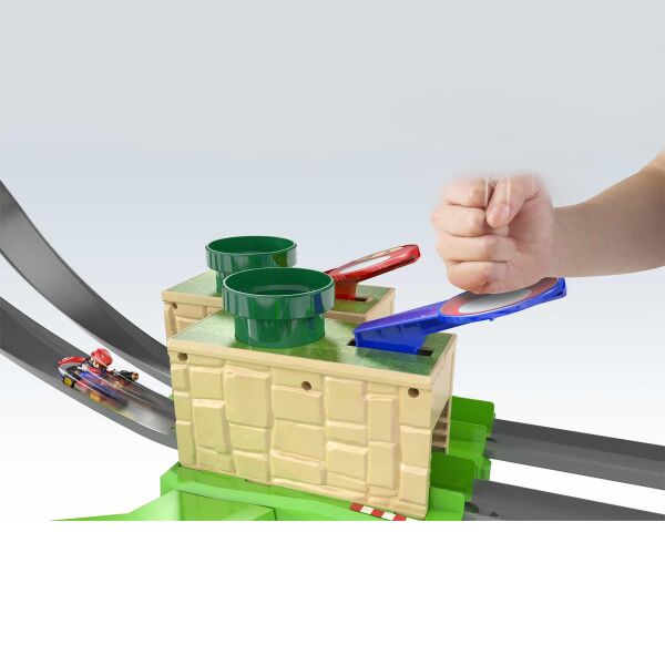 Hot Wheels®, popüler video oyununun ünlü pistlerinden ilham alınarak tasarlanan Çılgın Dönüş Parkuru Yarış Seti ile Mario Kart™ dünyasının hız dolu aksiyonuna hayat veriyor. En sevdiğiniz Mario Kart™ Mario karakterini tıpkı oyundaki gibi metal araçta yarıştırarak engelleri ve zorlukları aşın. Tabii, bu sefer Hot Wheels® pistinde! Aracı fırlatıcıya yerleştirip pisti turlayın. Pisti yeniden inşa edip diğer Mario Kart setlerine (Ayrı olarak satılır.) bağlayarak eğlencenin dozunu artırabilirsiniz. Mario Kart hayranlarının bayılacağı harika akrobasi hareketleri ve yarış heyecanı. 3 yaş ve üzeri içindir ve her biri ayrı olarak satılır.