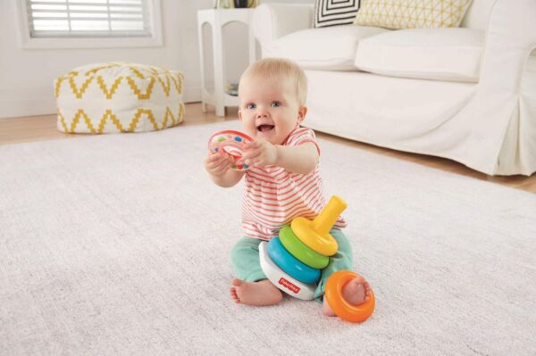 Fisher-Price® Renkli Halkalar® bebeğinizin için eğlenceli bir klasik. Küçük bebekler beş renkli halkayı kavramayı, tutmayı, sallamayı ve keşfetmeyi çok sevecek. Hacıyatmaz gibi sallanma özelliği sayesinde bebeğinizi eğlendirir. Üst üste dizmek el-göz koordinasyonunu geliştirmeye yardımcı olurken halkaları küçükten büyüğe sıralamak boyut kavramını tanıtır!