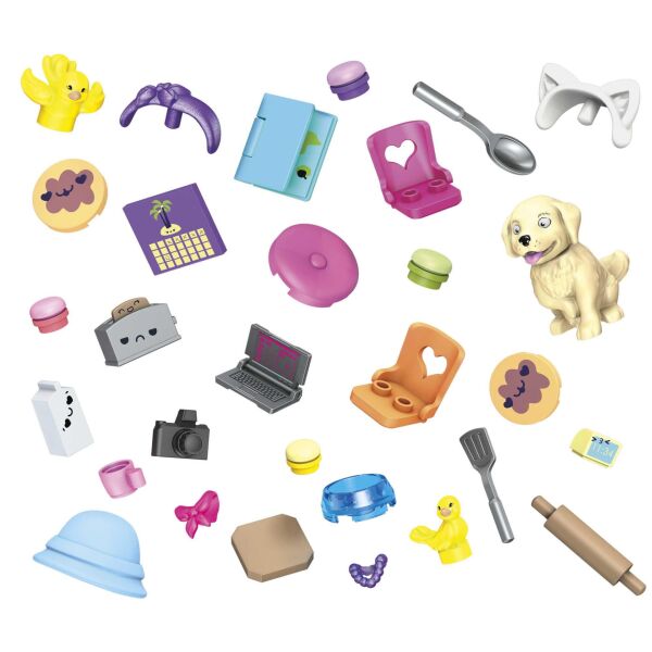 Barbie'nin Malibu Evi™'nde eğlence dolu bir dünyanın kapılarını aralama zamanı! Her bir odayı mobilyalar ve diğer aksesuarlar ile dekore ederek hayalinizdeki evi inşa edin, hayal gücünüzü kullanın. 2 mini Barbie™ Bebek ve sevimli köpek figürü ile pijama partisine hazır olun. Ardından stüdyoya gidip eğlenceli videolar hazırlayın çünkü Barbie™ ile her şey mümkün! Hikaye anlatımı ile dolu oyunlar sunan bu setin yapım aşamaları kolaydır. Wonder Builders seti ile kullanılabilir, 5 yaş ve üzeri çocuklar için uygundur.