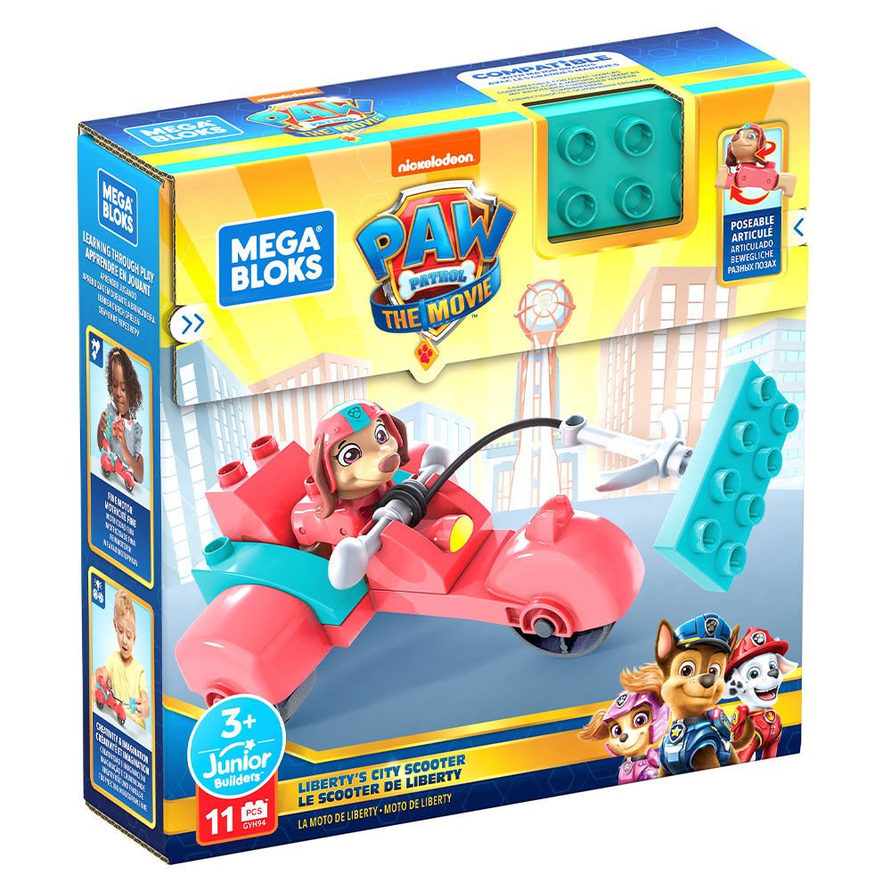 PAW Patrol Filmi'nden ilham alan yapı setinde, Liberty'nin kancası bulunan scooter'ını birleştirmek için özel parçalar da dahil olmak üzere 10 adet dayanıklı mini yapı bloğu bulunur.
