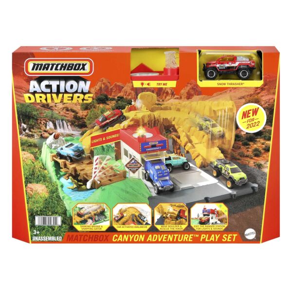 Her bir Matchbox™ Aksiyon Sürücüleri™ Oyun Seti, çocukların içindeki kahramanı ortaya çıkaran gerçekçi maceralar yaşatır. Çocuklar ürünle birlikte verilen 1:64 ölçekli Matchbox™ aracını oyun alanlarında dolaştırarak kapıları açıp ışıkları, sesleri ve diğer özellikleri etkinleştirir ve setteki birden fazla oyun alanında aksiyonu kontrol eder. Köşelerde yer alan bağlantı noktaları sayesinde oyun setleri, Hot Wheels™ Şehri gibi diğer setlere kolayca bağlanabilir. (Diğer setler ayrı olarak satılır.) Her sette 1:64 ölçekli bir adet Matchbox™ araba bulunur. Renkler ve süslemeler çeşitlilik gösterebilir.