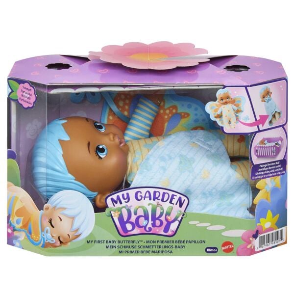 Bu My Garden Baby™ İlk Kelebek Bebeğim™ - Mavi Saçlı Bebek ile evinize neşe getirin! Kızlar, bu bebeğin sevimli kanatlarına, rengarenk saçına ve yasemin kokusuna bayılacak. Kundak keyfini artırmak için pelüş kanatları bebeğin etrafına sarın. 23 cm boyundaki yumuşak gövdeli bu kelebek bebek, minik kolların sarıp sarmalaması için ideal boyuttadır. İpli emziğiyle bebeği 'sakinleştirin'! Oyun setinin ambalajı katlanarak bebek bakımı oyunlarına ilham veren bir beşiğe dönüşür. My Garden Barbie™ bebeği çiçek kokulu rüyalara dalması için beşiğe yatırın. Kızlar My Garden Baby™ serisindeki bebekler ile ilgilenmeye bayılacak. Her biri ayrı olarak satılır ve stoklarla sınırlıdır. Renkler ve süslemeler çeşitlilik gösterebilir.