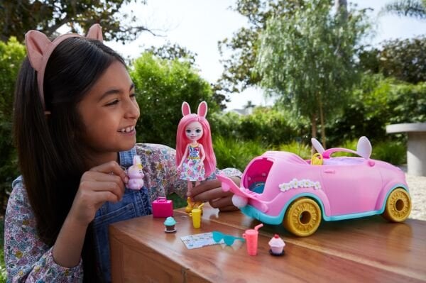 Enchantimals™ Tavşancık Araba'ya atlayın! Dönen tekerlekleri, açılan bagajı ve sevimli tavşan detaylarıyla bu üstü açık araba yolculuk maceraları için tasarlandı. Tavşan Bree™ (15 cm) ile Twist™, yanlarında valizleri, güneş gözlükleri, haritaları, içecek şişeleri ve diğer eşyalarıyla yola çıkmaya hazır. Çocuklar, 10 parça içeren bu Enchantimals™ Tavşancık Araba ve bebek setiyle macera dolu oyunlar oynamayı çok sevecek. Eğlenceyi başlatmak için itmek yeterli. Renkler ve süslemeler çeşitlilik gösterebilir.