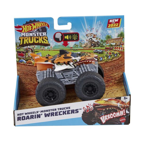 Hot Wheels™ Monster Trucks Kükreyen Arabalar™ koleksiyonundaki araçlar, heyecan dolu çarpma ve çarpışma aksiyonlarını, ışık ve ses sürprizleriyle zenginleştirilmiş olarak sunuyor. 1:43 ölçekli araçlar, Hot Wheels® Monster Trucks markasına özel dev tekerlekler ve muhteşem grafikler taşıyor. Düğmeye bastığınızda sadece motor ve çarpma seslerini değil, her kahraman aracın tanıtım müziğini de duyacaksınız, üstelik tıpkı bir canlı gösterideymişçesine. Ayrıca her Monster Trucks aracının pencerelerinden ışıklar süzülüyor. Çocuklar tüm araçları koleksiyonlarına eklemek ve evlerinde ses efektleri eşliğinde yarışmalar düzenlemek için sabırsızlanacak (her biri ayrı olarak satılır). Renkler ve süslemeler çeşitlilik gösterebilir.