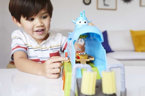 Bu set ile suda eğlenceli bir vakit geçirmeye hazır mısınız? Kutudan çıkar çıkmaz bu heyecanlı serüvene renk değiştiren Şimşek McQueen aracı da dahildir. Disney+ Cars on the Road serisindeki sevilen anlardan ilham alan bu oyuncakla çocuklar renk değişimi heyecanını yaşayabilir. Şimşek McQueen'i içeri yerleştirin ve sevimli yarışçımızı denizaltı şeklindeki oto yıkamada hareket ettirmek için forklifti kaydırın. Renk değiştiren araç, üzerine ılık su sıkıldığında farklı bir görünüme bürünür. Soğuk suya girince tekrar eski haline döner. Arabayı 'kurutmak' için köpük silindirden geçirin, istasyondan yakıt doldurun ve yeni bir maceraya atılın. Kirlenince ise temizlemek için geri dönün. 3 yaş ve üzeri çocuklar ile Cars hayranları, gün boyu oynarken hayal güçlerini kullanabilir ve daha geniş bir dünya oluşturmak için diğer renk değiştiren araçlar ile oyun setlerini oyuna dahil edebilir. Renkler ve süslemeler çeşitlilik gösterebilir.
