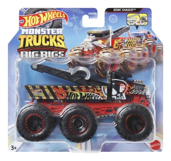 Hot Wheels Monster Trucks Big Rigs, destansı maceralar için altı tekerlek üzerinde tonlarca kişilik sunuyor. Her döküm kamyon, popüler 1:64 ölçekli Monster Truck karakterinin veya yaratığının tarzını ve kişiliğini yansıtıyor. Bu yarı kamyon, altı büyük tekerleğe ek olarak, çekme kancasını kullanarak veya düz platformlu römork üzerinde ek bir Hot Wheels Monster Truck da taşıyabilir. Ek kamyonlar ayrı olarak mevcuttur. Stiller, renkler ve tasarım farklılık gösterebilir.