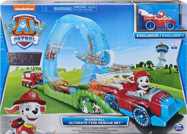 Kutu içerisinde; Marshall figürlü metal araba, itfaiye arabası çıkartmaları ve kurtarma pisti yer almaktadır.
