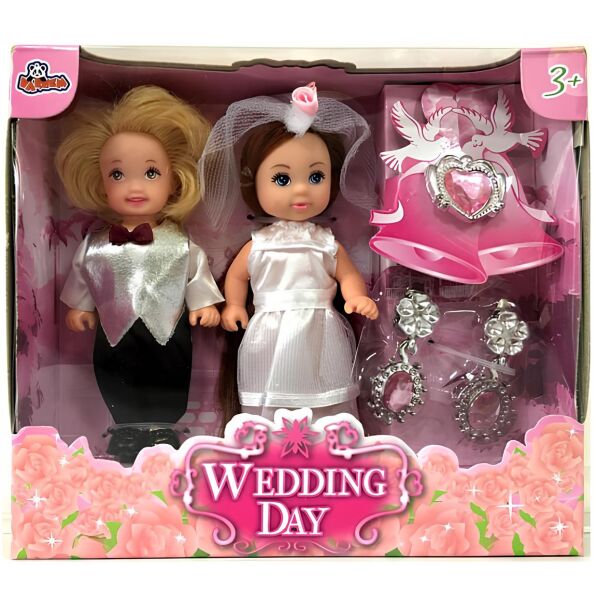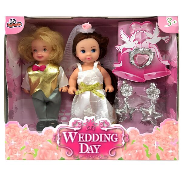 Gelin ve damat çok tatlı! Oyuncak bebek aksesuarlıdır, boyları 11 cm dir. Yaş Grubu : 3+ Yaş Kutu Ölçüleri : 15 x 14 x 5 cm.